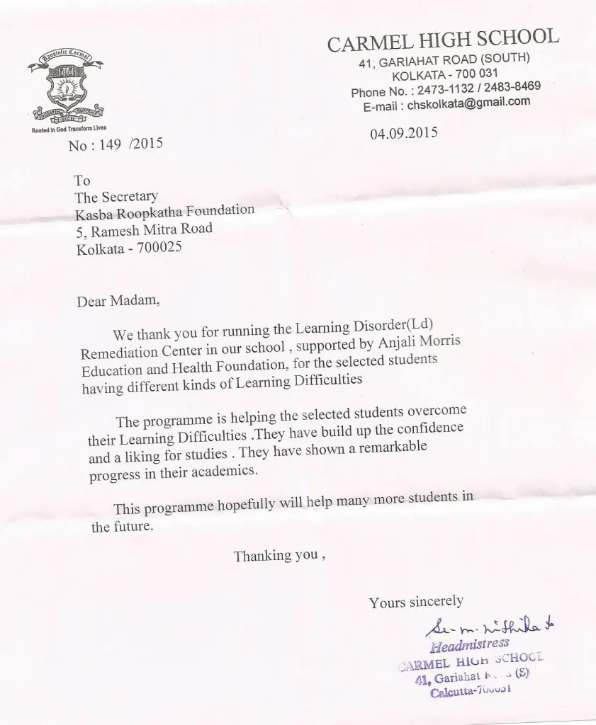 ROOPKATHA FOUNDATION joins hands with Pune-based DR. ANJALI MORRIS EDUCATION AND HEALTH FOUNDATION (AMF) to work in the field of Identification and Remediation of Learning Difficulties of the school going children in the city of Kolkata.